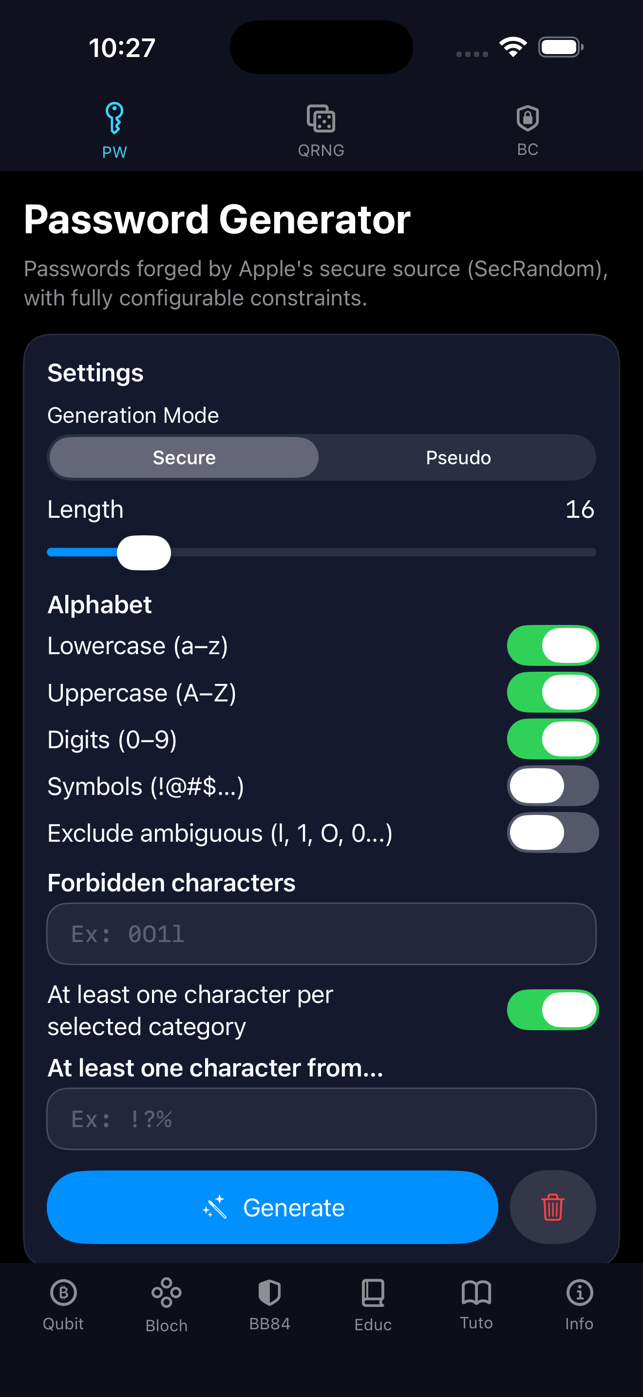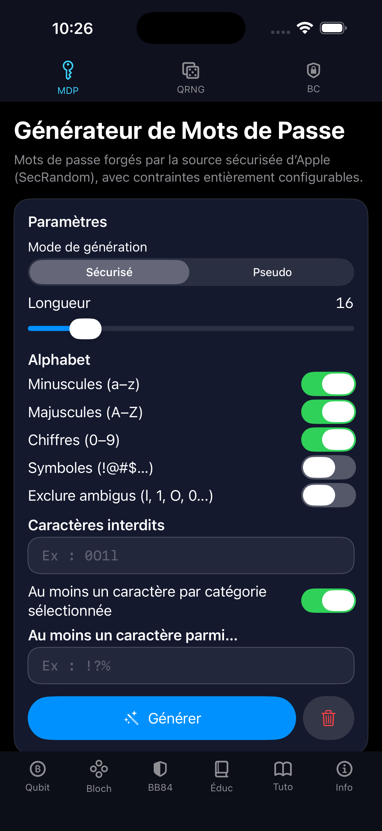 Une application iOS innovante combinant un générateur de mots de passe robuste et une suite éducative interactive.